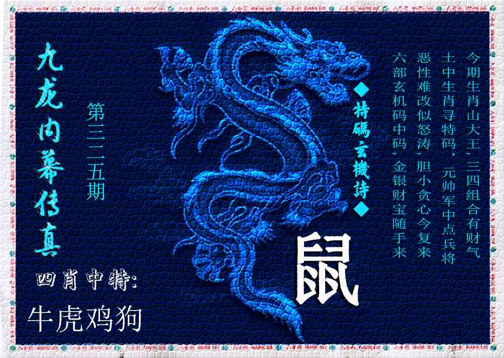 | 内部四肖 | 牛鼠猴龙 | 開:?00准 |