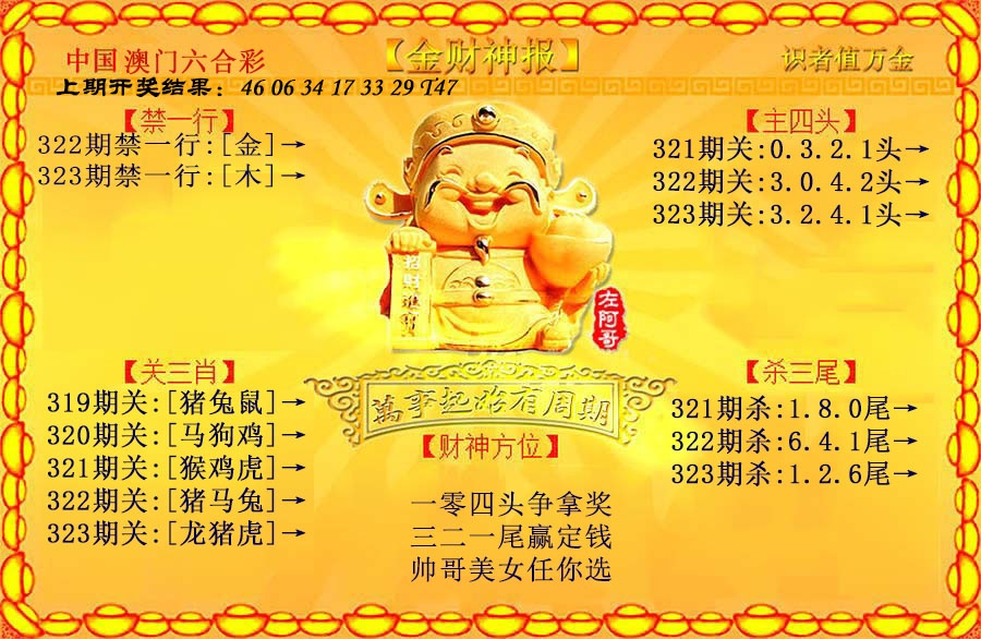 | 323期必中二肖:虎龙 | 323期必中③码:04.40.02 |